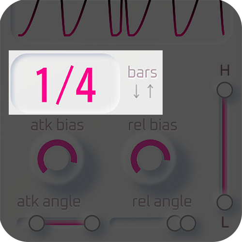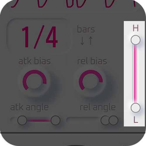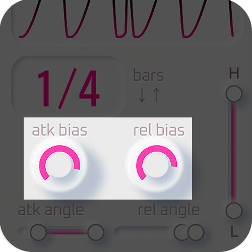 Control the bias of the attack and release parts of the volume curve. Bend the rising and falling off the curve shapes.