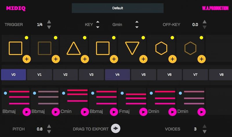 Preset data is automatically saved in DAW sessions and can be exported for import into other sessions. Equally, copy-and-paste, drag-and-drop and drag to-host functionalities are all included for ultimate flexibility. And it doesn't stop there... experiment with feeding a chord progression into an arpeggiator, running several plug-in instances in parallel, generating polyrhythmic patterns and finding interesting chord progressions between two or more chords.